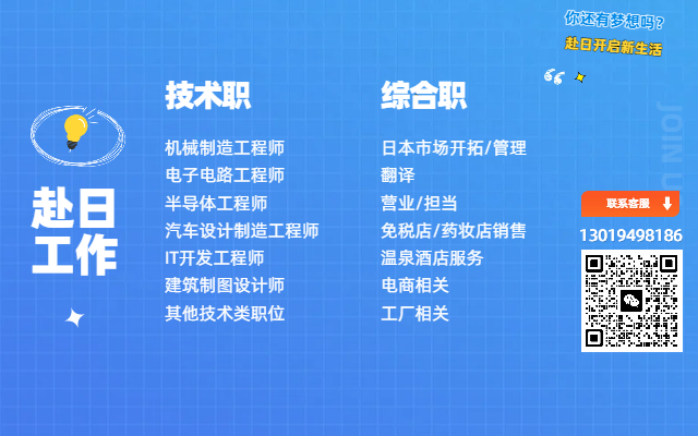 嚴(yán)海赴日(workinjapan.cn)是專(zhuān)業(yè)的赴日工作服務(wù)平臺(tái),是大連嚴(yán)海人力資源有限公司旗下品牌。主要提供日本就職(工作簽)/日本留學(xué)(半工半讀),等最新工作信息和資訊,為想赴日工作的小伙伴們提供專(zhuān)業(yè)的、一對(duì)一的咨詢(xún),為您職業(yè)生涯規(guī)劃、永居辦理、在日期間換職、轉(zhuǎn)換簽證等方面提供支援。